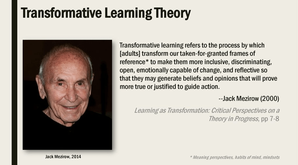 Figure 1. Jack Mezirow, 2014. Transformative Learning Basic PPT. Slideplayer.com. https://slideplayer.com/slide/14578093/